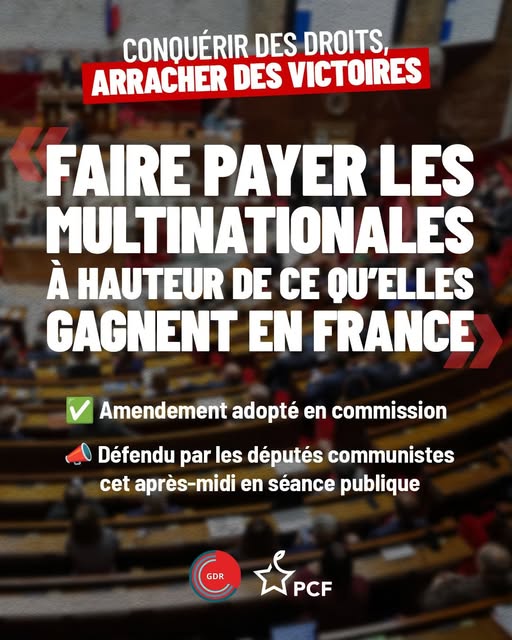 Adopté en commission, l’amendement porté par Les député·e·s du groupe GDR, sera défendu cet après-midi en séance publique dans le cadre du #PLF2026.