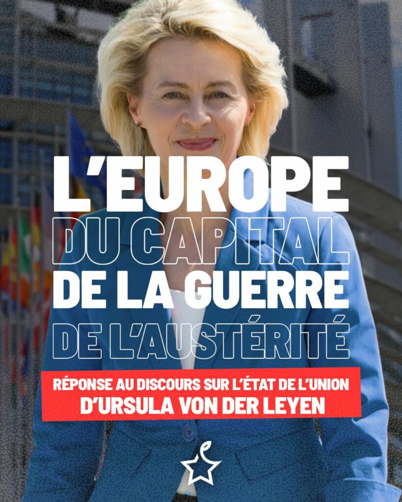 Aujourd’hui, Ursula von der Leyen a confirmé ce que nous dénonçons depuis des années : l’Union européenne s’enfonce dans une fuite en avant militariste, néolibérale et autoritaire.