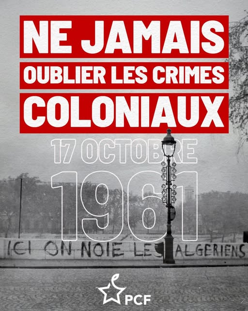 🕯️ Rendez-vous à 18h, pont Saint-Michel, pour rendre hommage aux victimes du 17 octobre 1961 et dénoncer les résurgences du racisme et du colonialisme dans la France d’aujourd’hui.