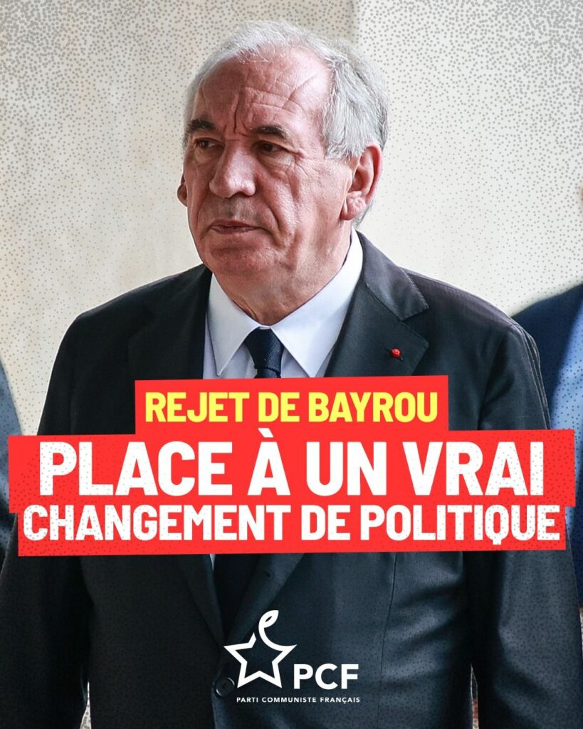 L’échec du gouvernement Bayrou montre que Macron doit changer de politique : augmentation des salaires, abrogation de la réforme des retraites, moratoire sur les licenciements, justice fiscale, critères sociaux et environnementaux pour les aides publiques aux entreprises, et action résolue pour la paix.