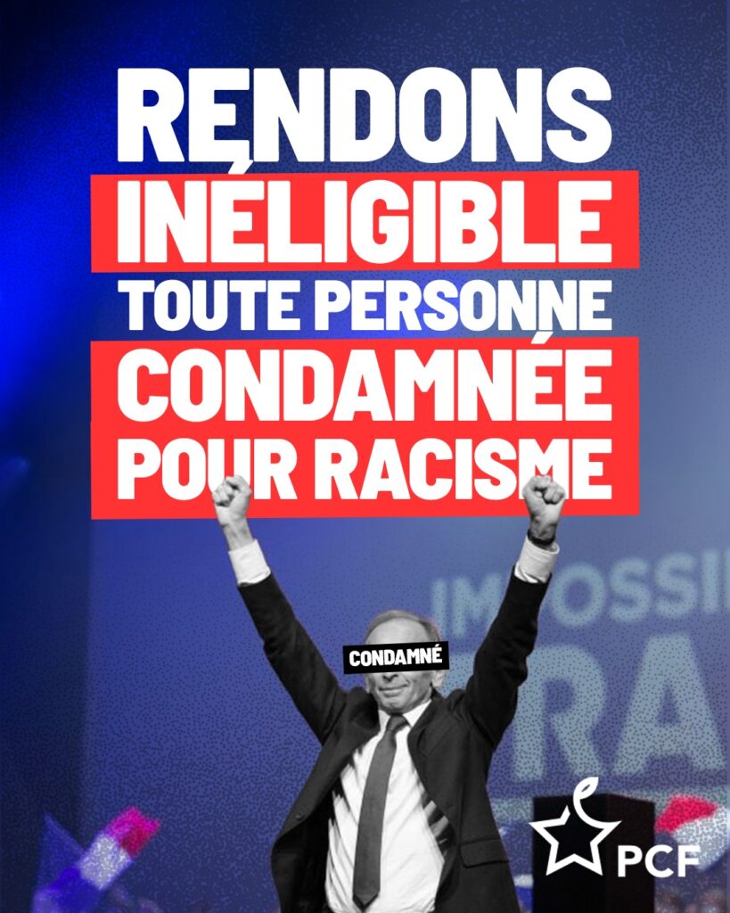 Le PCF appelle à rendre inéligibles les responsables politiques condamnés pour propos discriminatoires.